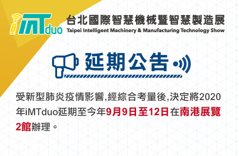 2020台北國際智慧機械暨智慧製造展 (iMTduo)展會日期延後至2020年9月9日至12日