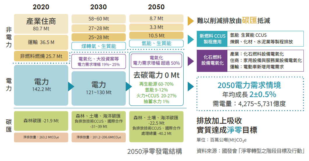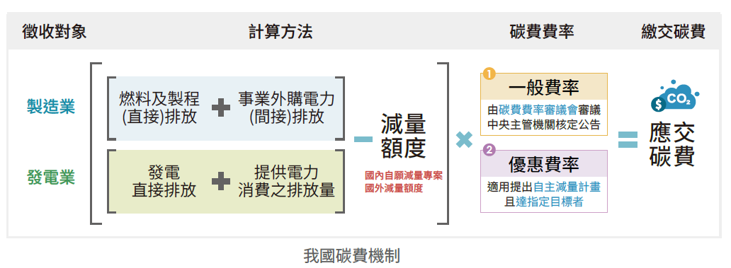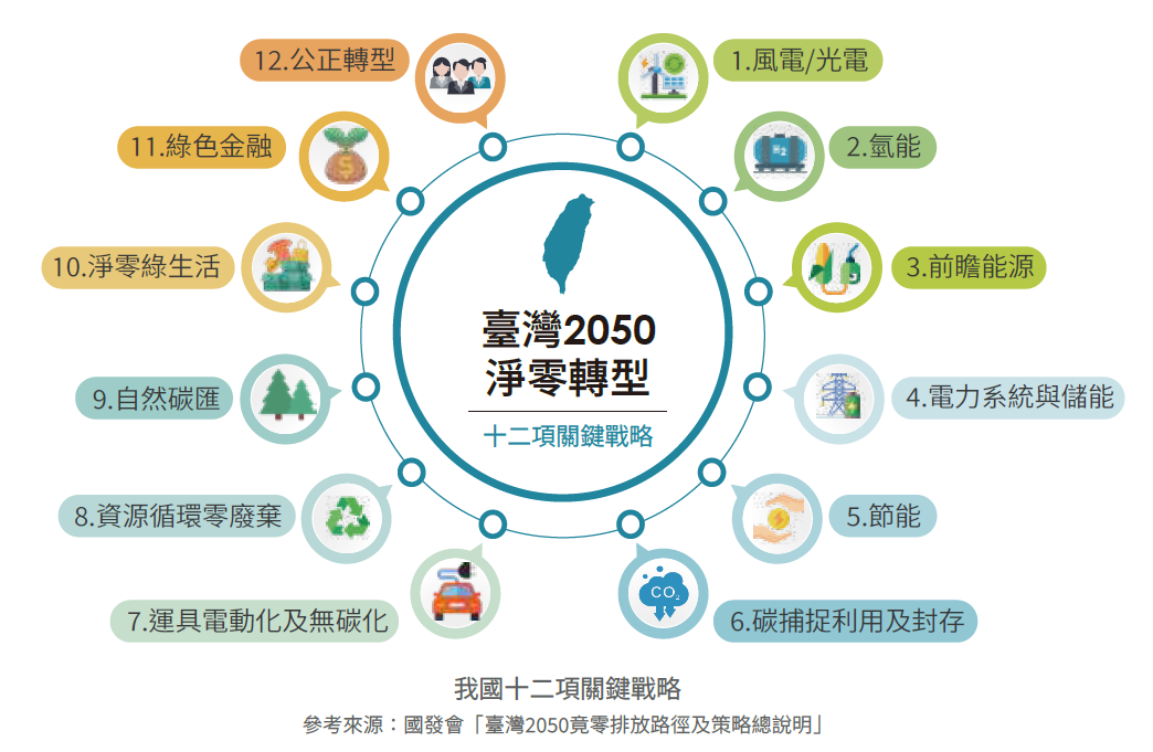面對國際減碳浪潮,作為出口導向經濟體、在全球供應鏈中擔任要角的臺灣,也必須積極跟進,接軌國際市場。因此,我國在2021年4月宣示2050淨零轉型目標,並在2022年3月發布「臺灣2050淨零排放路徑及策略總說明」,另在2022年12月公布十二項關鍵戰略的行動計畫,展現和世界共同邁向淨零的決心。同時,我國也在2023年2月公布將《溫室氣體減量及管理法》修正為《氣候變遷因應法》,除了將2050淨零排放目標入法、強化氣候變遷調適措施,更導入碳費機制,為臺灣邁向淨零之路奠定法制基礎。