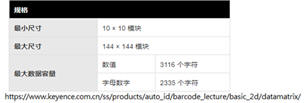 尺 寸:Data matrix的最小尺寸是目前所有條碼中最小的。